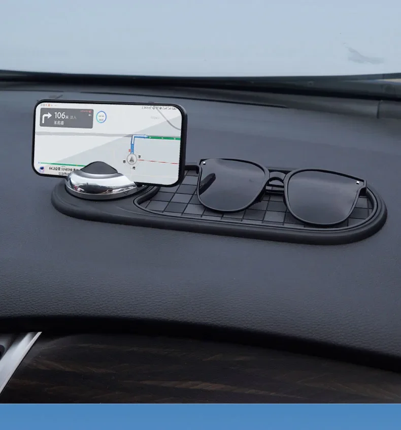Upgrade your driving experience with the Multifunction Car Anti-Slip Mat, a sleek 3-in-1 dashboard organizer that combines a rotatable phone holder, non-slip pad, and temporary parking number plate. Designed for modern drivers, this anti-skid dashboard mat keeps your essentials secure while adding style and functionality to your car interior. Crafted from durable, heat-resistant PVC, it grips phones, keys, sunglasses, and small gadgets even on bumpy roads. The 360° rotatable phone mount allows for hands-free navigation and calls, while the flip-up parking number plate ensures your contact info is visible when needed. Perfect for daily commutes, rideshare drivers, and road trips, this universal car dashboard mat fits most vehicles and smartphone models. Stay organized, drive safer, and park smarter with this all-in-one solution.