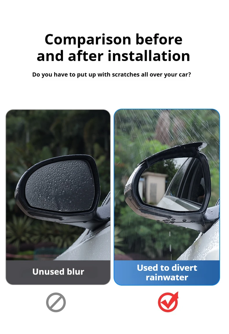 - Rain Protection: Prevents raindrops from blurring rearview mirrors, ensuring clear visibility while driving.