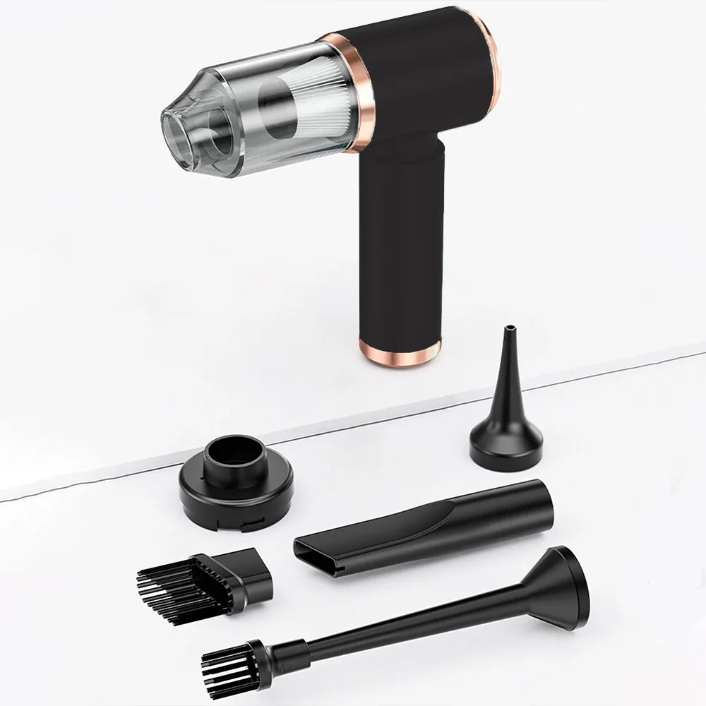 The Wireless Car Vacuum & Air Pump is your all-in-one solution for car cleaning, home use, and travel convenience. This 4-in-1 smart air pump functions as a powerful vacuum, precision blower, compact inflator, and vacuum sealer making it the most versatile tool in your kit. With up to 16,000Pa suction power, it tackles dirt, pet hair, and debris with ease. The cordless design and USB rechargeable battery offer freedom and portability, while the washable HEPA filter ensures long-term performance and cleaner air. Whether you're detailing your car, inflating pool toys, or packing for a trip, the DuoVac mini handheld vacuum delivers unmatched versatility. Compact, lightweight, and built for modern lifestyles, it’s the ultimate cleaning companion for auto enthusiasts, travelers, and busy households.